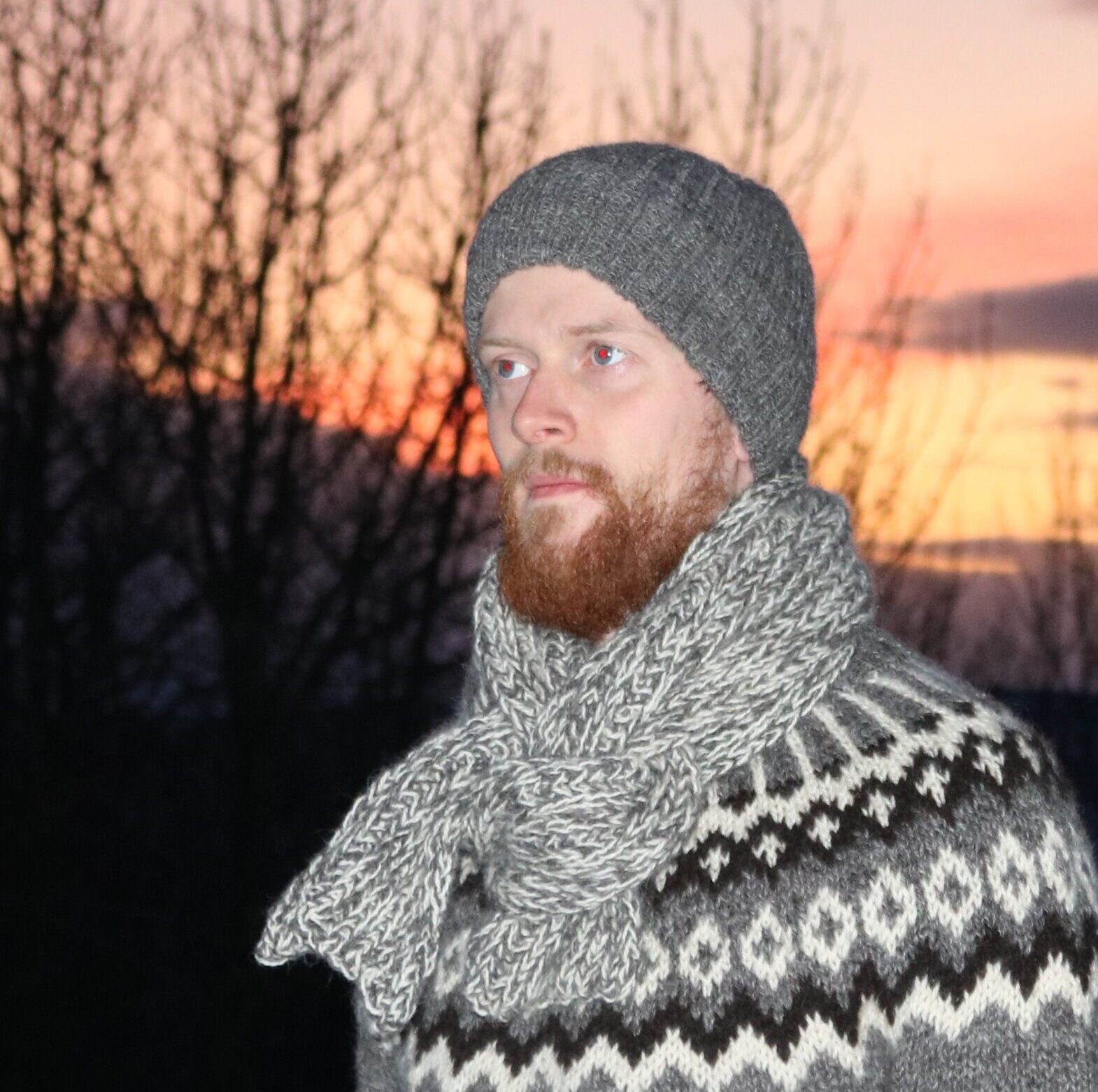 A pattern for the scarf Klukkutrefill. It is knitted in brioche (fisherman’s rib) and you need 3 skeins of Dvergaband or other bulky yarn 100m/100gr. You hold one thread and get one solid colour.
